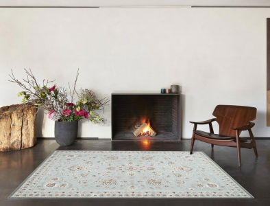 Silkinhohtoinen, samettisen pehmeä viskoosimatto, jossa viehättävä yhdistelmä sileää ja nukkaa.